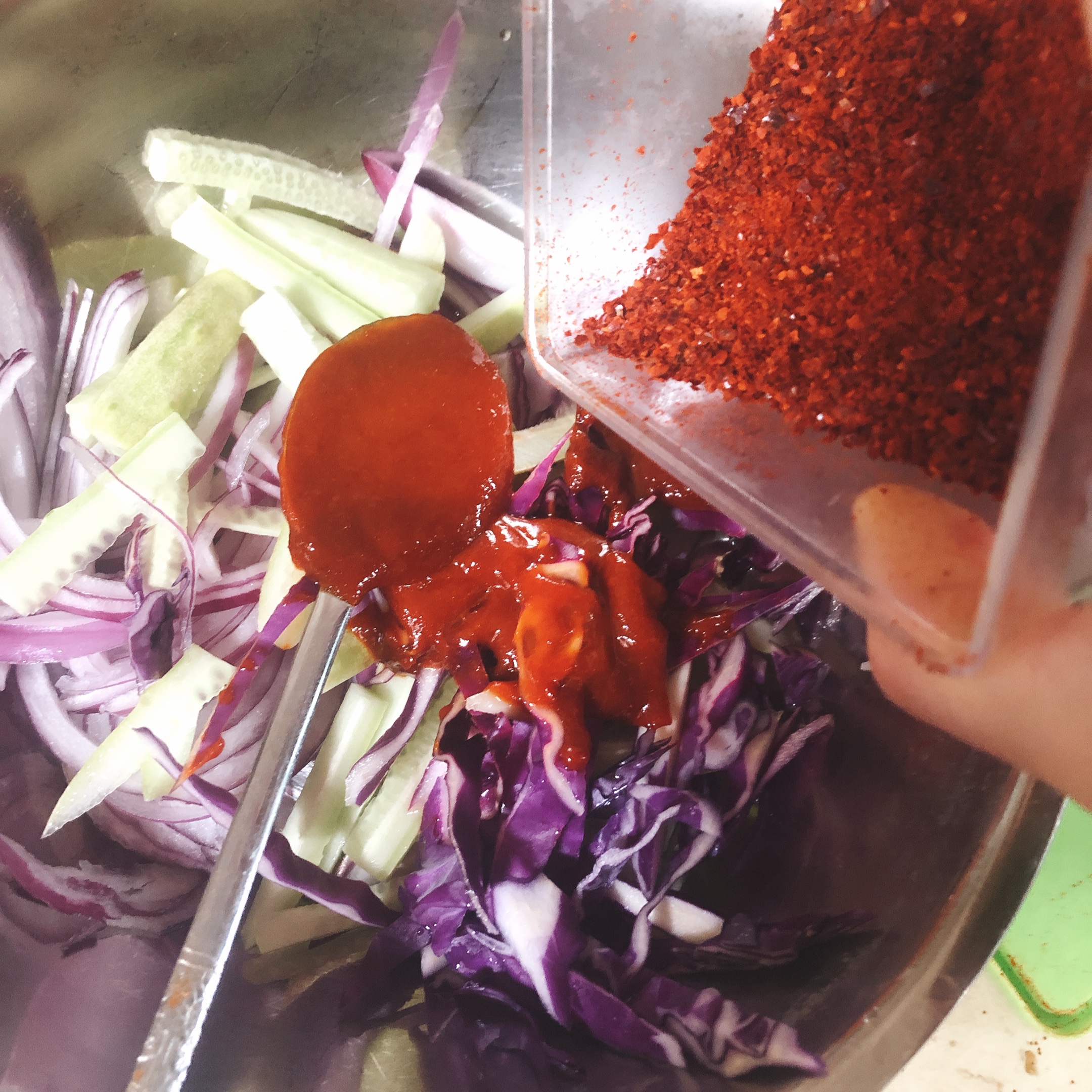 짜잔!! 빨간 양념 보이시나요..!! 이제 섞어 주시기만하면 됩니다.!!