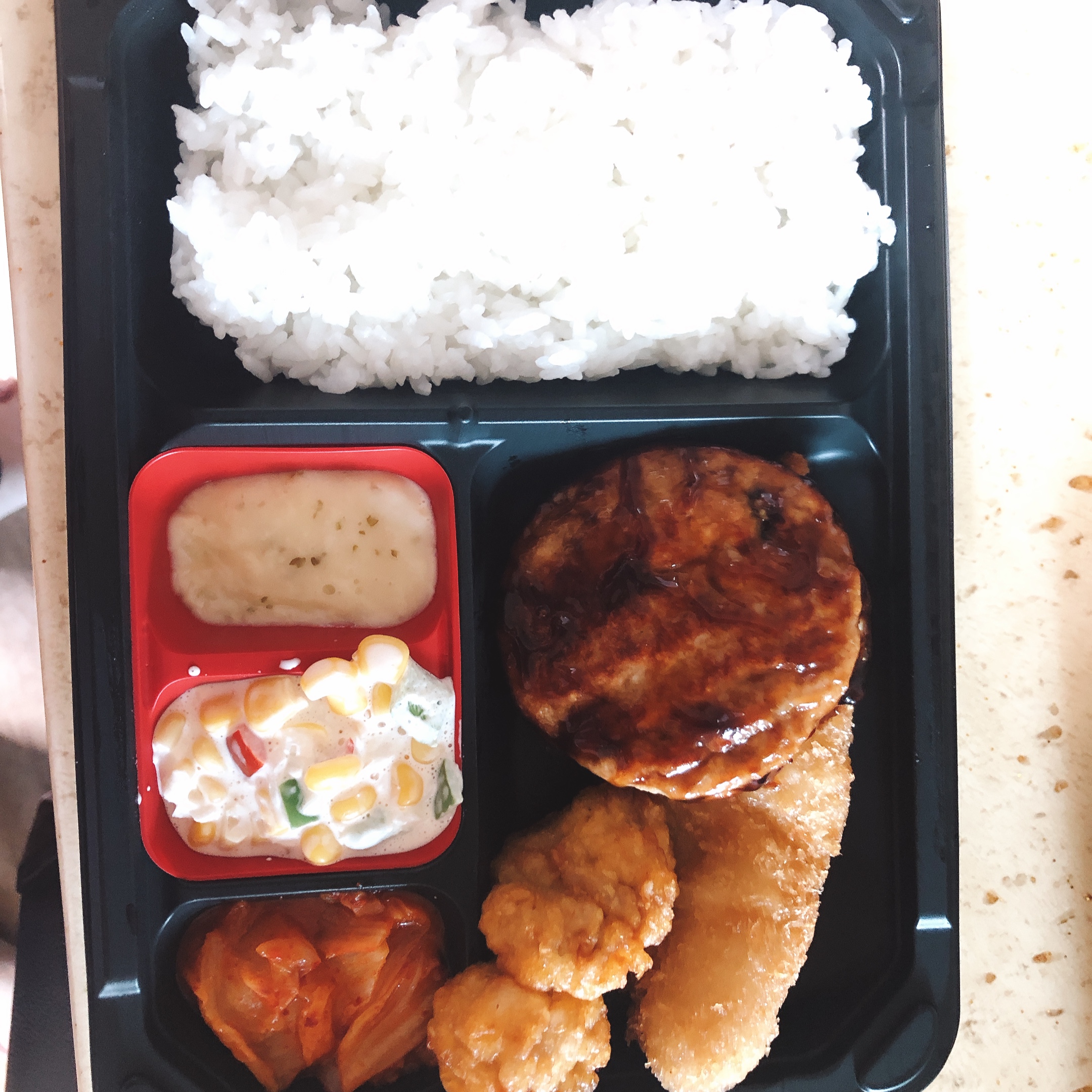 한식보단 튀김류 좋아하시는분은 함박앤치킨 도시락추천 드려요 ! 가격은 3천800원입니다 !! 콘샐러드가 특히 맛있더군요 ㅋㅋ 저 흰색은 첨에 스프인줄알고 퍼먹었는데 ㅋㅋ 치킨 소스 더군요 ..허허 ㅋㅋ 타르타르 소스같아요 맛있습니당 !