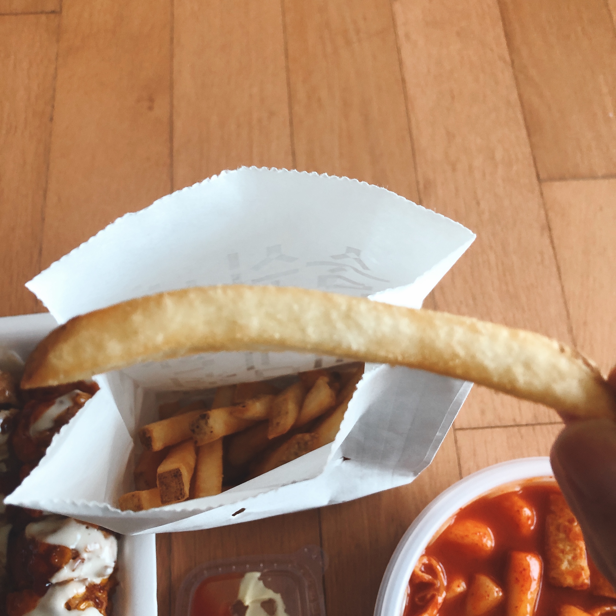 떡볶이는 생각보다 별로였어요 ..! 좀 싱겁달까 ..? 오뎅국물 베이스 맛이 많이났어요 떡도 많이 뿔은느낌이구요 ..밀떡의 식감을 좋아하는데 뿔어서 쌀떡볶이 같았네요 ㅎㅎ