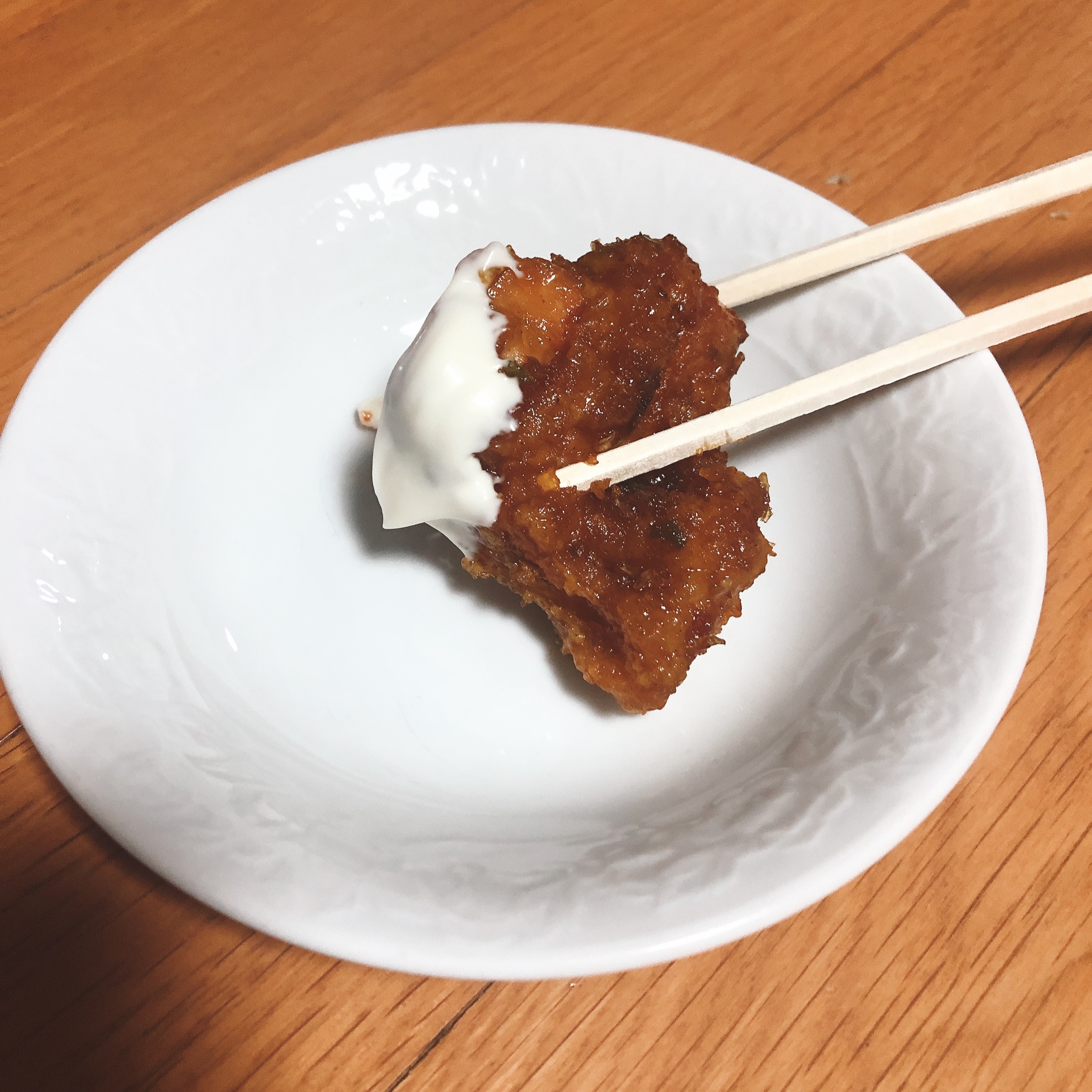마요네즈에 찍어 먹어봤어요 ..!! 와....인생치킨 만났다 ..생각했습니다 ..ㅠㅠ 교촌치킨을 좋아했었는데 바뀔거같은 느낌이였어요 ㅋㅋ 마요네즈랑 진짜 잘어울리더라구요 그리고 맵지않고 살짝달콤하면서 안에 고추가 잘게다져서 붙어있어요 그냥 한마디로 맛있다..!