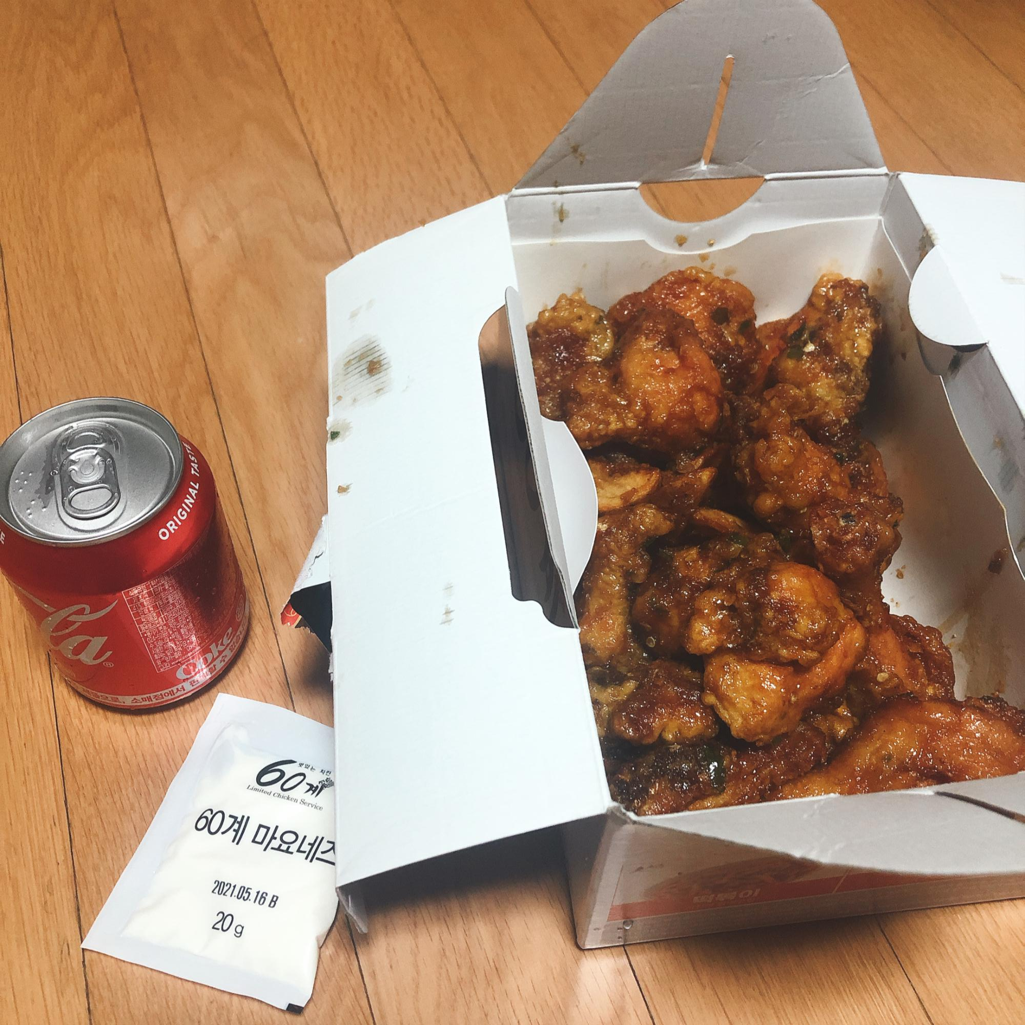 티비광고로 항상 보던 60계치킨 그중에서도 제일 유명한 고추치킨을 드디어!!처음으로 먹어 봤습니다 ..ㅋㅋ 이영자님이 너무맛있게드시던..그것!